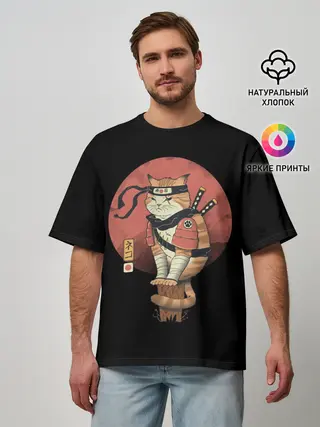 Мужская футболка оверсайз / Кот Ниндзя