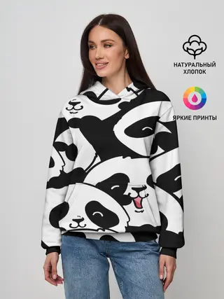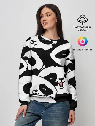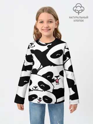 Лонгслив женский. Хлопок / Панды На Велосипеде