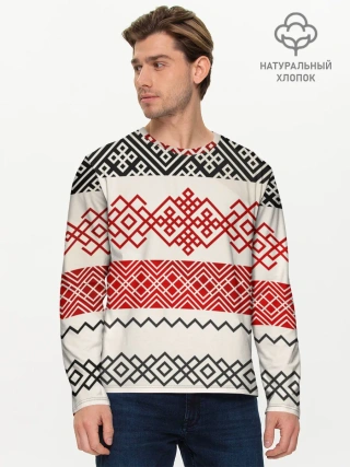 Мужской лонгслив базовый / Славянский узор красно-черный