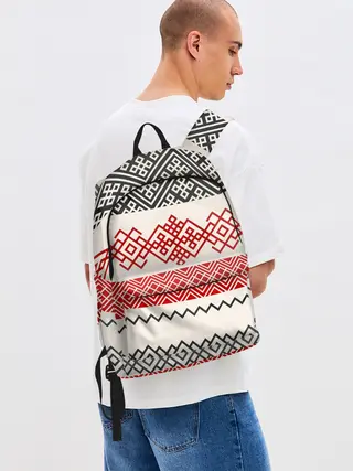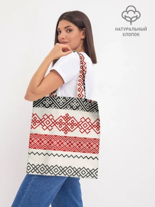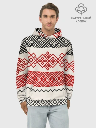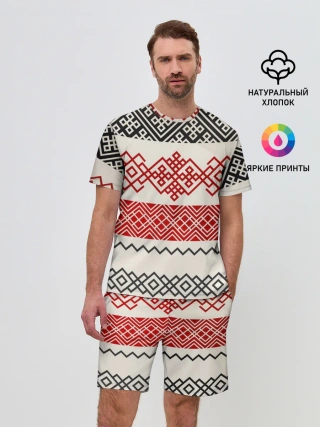 Мужская футболка оверсайз / Славянский узор красно-черный