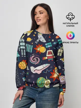 Лонгслив женский. Хлопок / Корабли, планеты и спутники