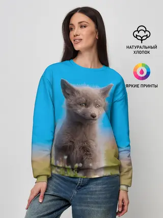 Лонгслив женский. Хлопок / Абстрактная лиса