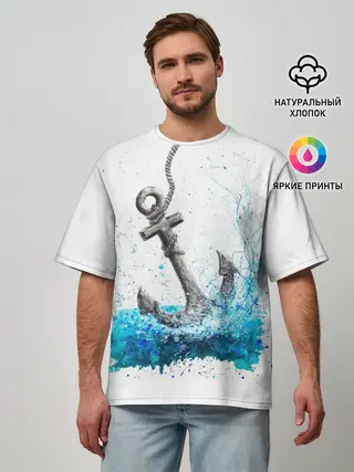 Мужская футболка оверсайз / Якорь На Холсте