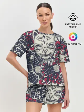 Женская пижама с шортами / Кицунэ | Маска лисы