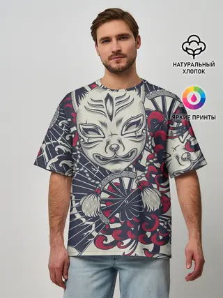 Мужская футболка оверсайз / Кицунэ | Маска лисы