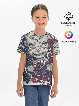 Детская базовая футболка / Кицунэ | Маска лисы