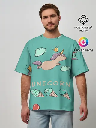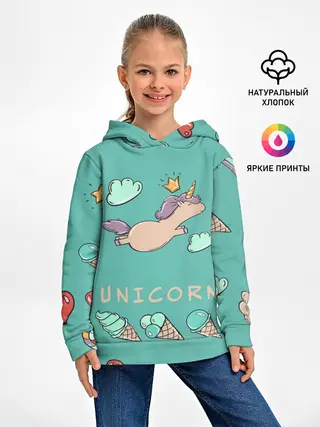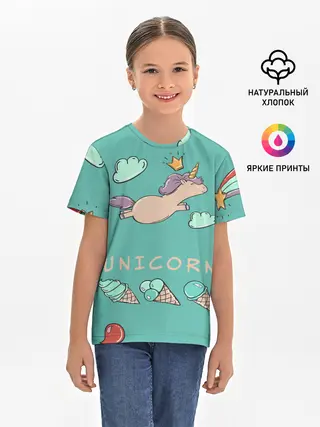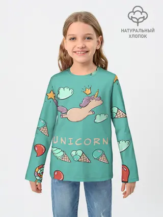 Лонгслив женский. Хлопок / Единорог с мороженкой