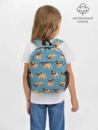 Лонгслив женский. Хлопок / Мопс в рюкзаке