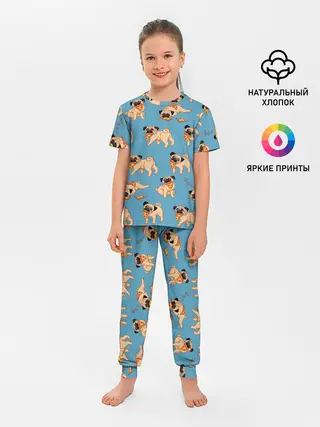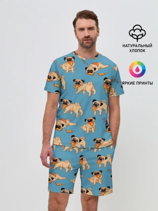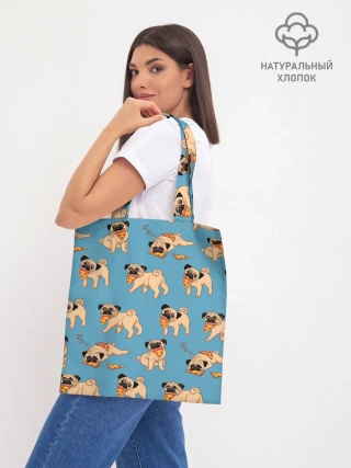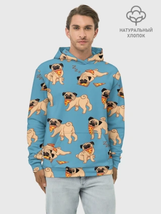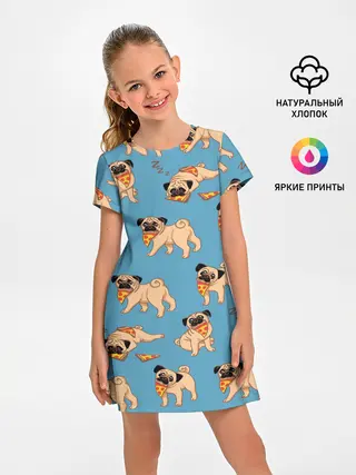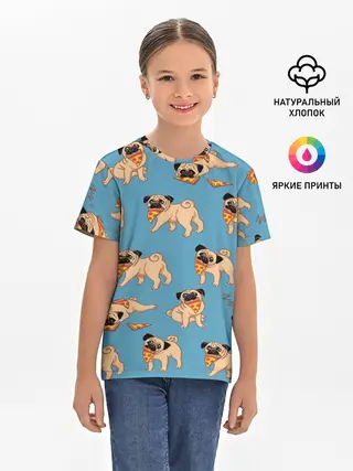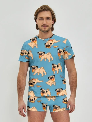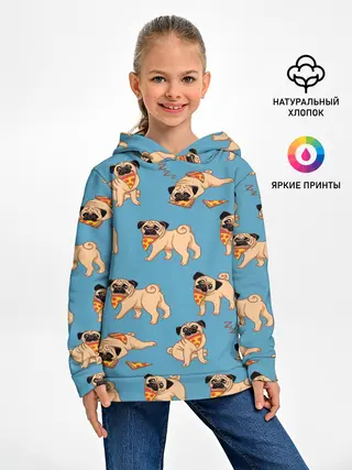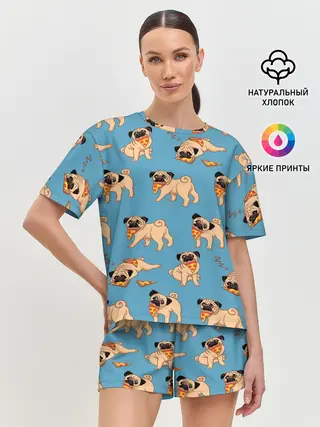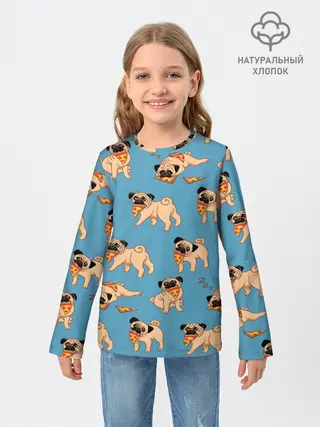 Лонгслив женский. Хлопок / Мопсы с пиццей