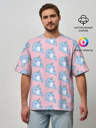 Мужская футболка оверсайз / Дельфинчики | Единорожки