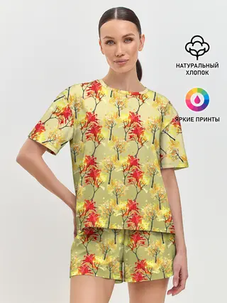 Женская пижама с шортами / самый осенний принт