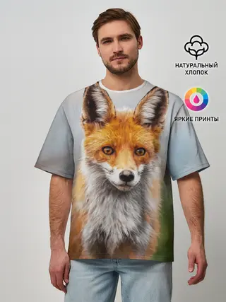 Мужская футболка оверсайз / рыжая лисица