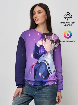Лонгслив женский. Хлопок / Котик-антидепрессант