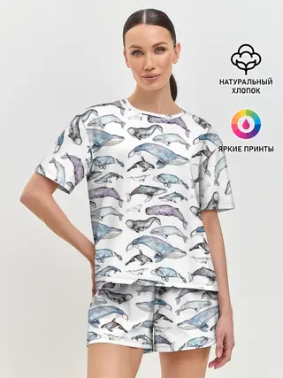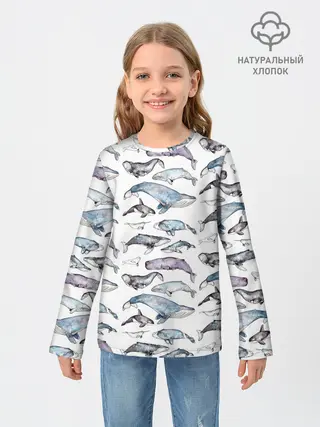 Лонгслив женский. Хлопок / ДЕЛЬФИН В МОРЕ.