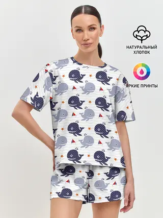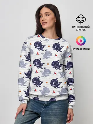 Лонгслив женский. Хлопок / ДЕЛЬФИН В МОРЕ.