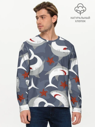 Мужской лонгслив базовый / Акулы