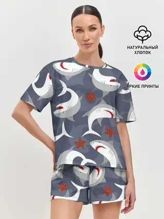 Женская пижама с шортами / Акулы