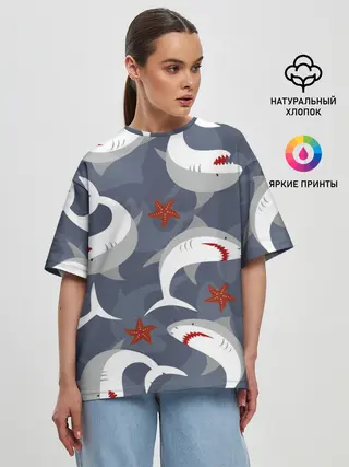 Женская футболка оверсайз / Акулы