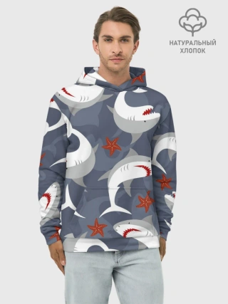 Худи мужской база хлопок / Акулы