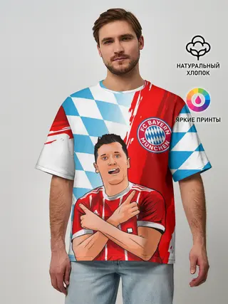 Мужская футболка оверсайз / РОБЕРТ ЛЕВАНДОВСКИ / БАВАРИЯ