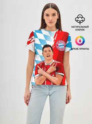 Женская базовая футболка / РОБЕРТ ЛЕВАНДОВСКИ / БАВАРИЯ