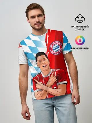 Мужская базовая футболка / РОБЕРТ ЛЕВАНДОВСКИ / БАВАРИЯ