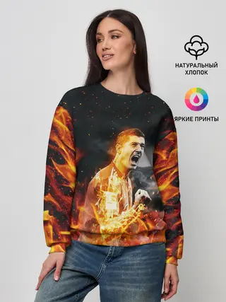 Женский свитшот / РОБЕРТ ЛЕВАНДОВСКИ / ОГОНЬ