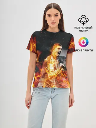 Женская базовая футболка / РОБЕРТ ЛЕВАНДОВСКИ / ОГОНЬ