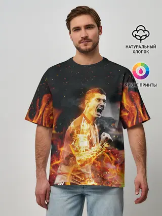 Мужская футболка оверсайз / РОБЕРТ ЛЕВАНДОВСКИ / ОГОНЬ