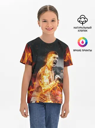 Детская базовая футболка / РОБЕРТ ЛЕВАНДОВСКИ / ОГОНЬ