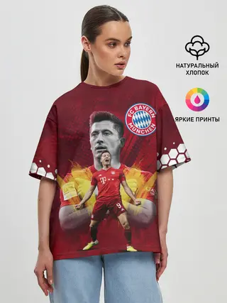 Женская футболка оверсайз / РОБЕРТ ЛЕВАНДОВСКИ / БАВАРИЯ