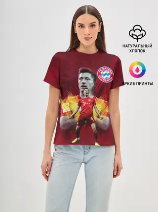 Женская базовая футболка / РОБЕРТ ЛЕВАНДОВСКИ / БАВАРИЯ