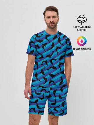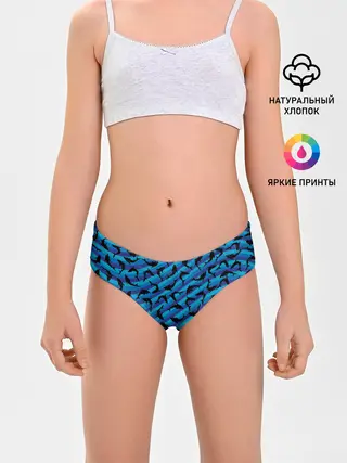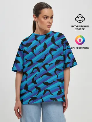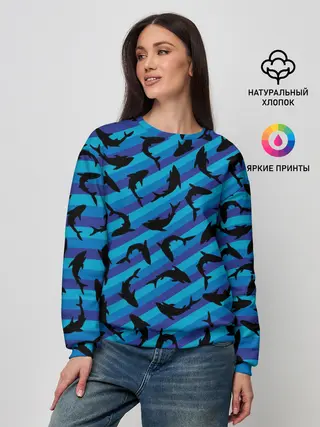 Лонгслив женский. Хлопок / Черные акулы паттерн