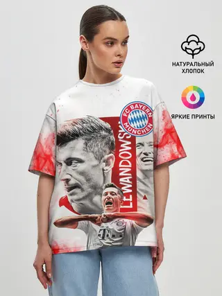 Женская футболка оверсайз / РОБЕРТ ЛЕВАНДОВСКИ / БАВАРИЯ