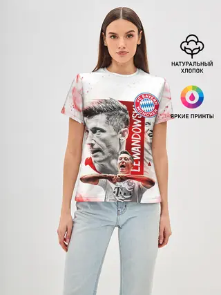 Женская базовая футболка / РОБЕРТ ЛЕВАНДОВСКИ / БАВАРИЯ