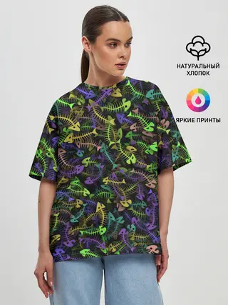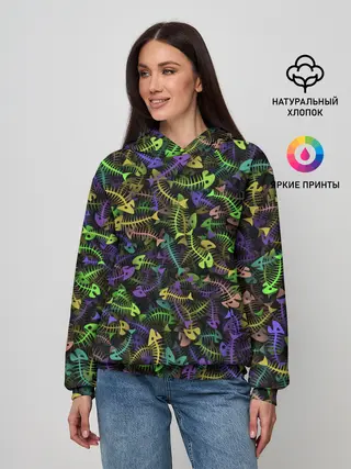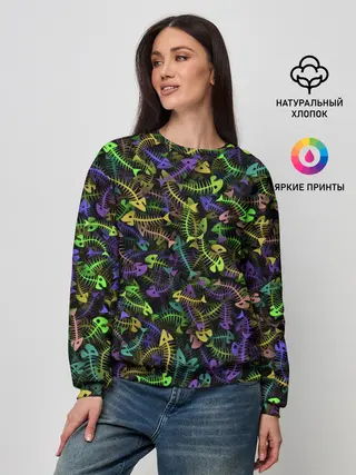 Лонгслив женский. Хлопок / Neon Fish Bone