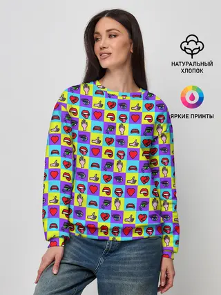 Лонгслив женский. Хлопок / Поп-арт в моде