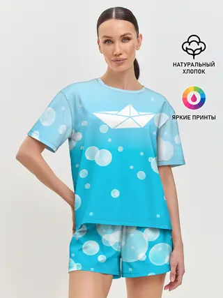Женская пижама с шортами / Бумажный кораблик