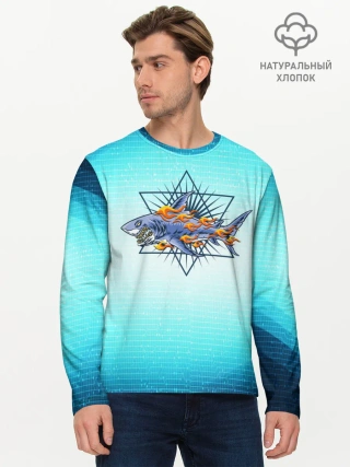 Мужской лонгслив базовый / Акула в огне