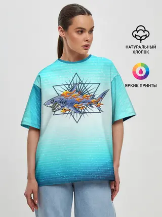 Женская футболка оверсайз / Акула в огне
