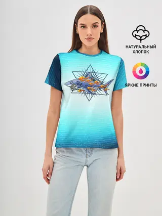 Женская базовая футболка / Акула в огне