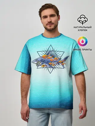 Мужская футболка оверсайз / Акула в огне