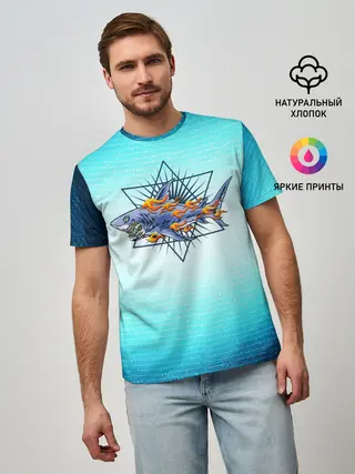 Мужская базовая футболка / Акула в огне