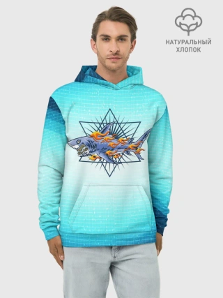 Худи мужской база хлопок / Акула в огне