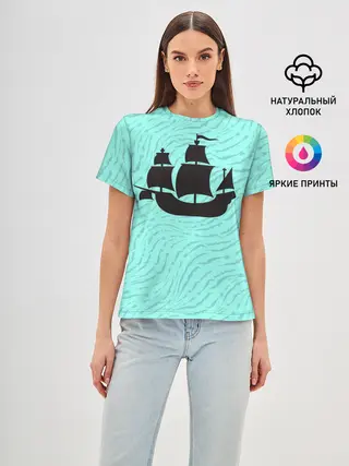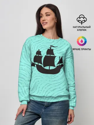 Лонгслив женский. Хлопок / ПАРУСНИК В МОРЕ | ЛЮБЛЮ МОРЕ
