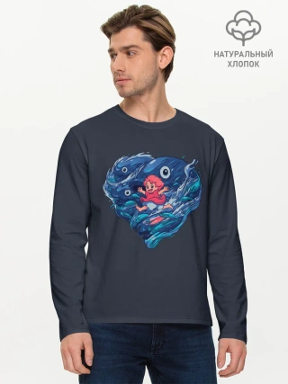 Мужской лонгслив базовый / Ocean heart. Totoro