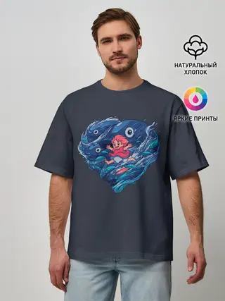 Мужская футболка оверсайз / Ocean heart. Totoro