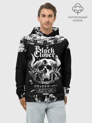 Худи мужской база хлопок / Чёрный клевер череп демона