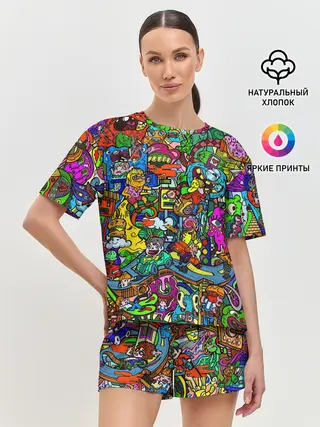 Лонгслив женский. Хлопок / Мексиканский орнамент