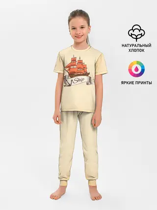 Лонгслив женский. Хлопок / Кораблики да маяки